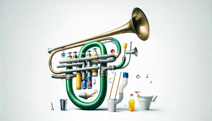 Understanding how what is this homemade trombone contraption functions requires a bit of imagination. Let’s start by looking at how a traditional trombone works. A regular trombone has a long slide that you move to change notes, a bell where the sound comes out, and a mouthpiece where you blow air to make the music. It’s like when you blow into a bottle to make a sound, but with more parts to change the notes.
